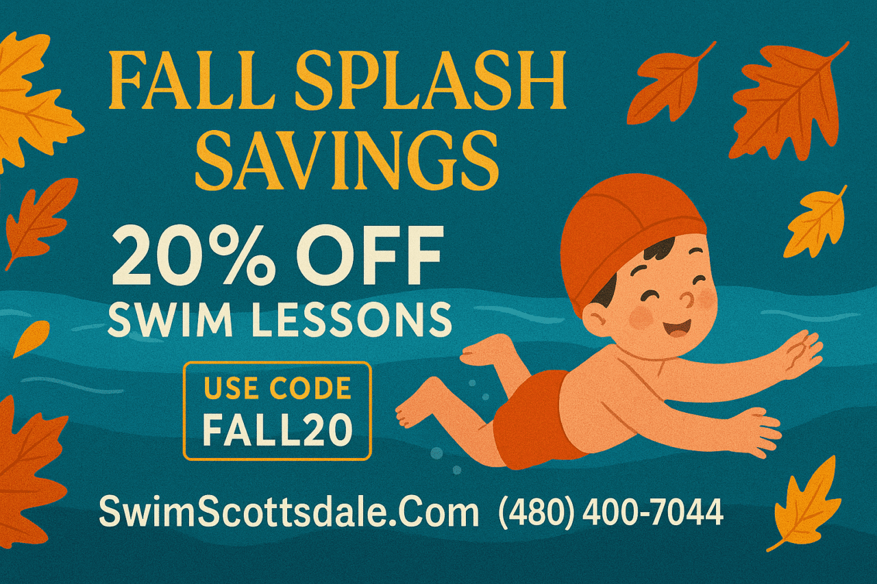 There’s no better time to plan ahead for your private swim lessons! Swim Scottsdale is excited to announce our Fall Splash Savings, where you can enjoy 20% off all lesson packages when you book between September 20th and October 31st, 2025.